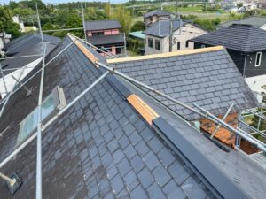 棟板金の交換工事では、棟板金を剥がすだけでなく、貫板の交換も必要になります。