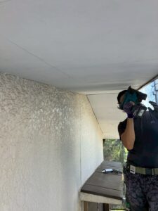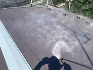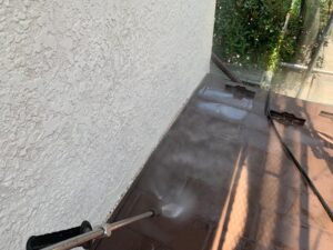 今回塗装させていただく部分に高圧洗浄をしていき、汚れや古い塗膜などを取り除いていきます。