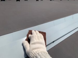 主に塗膜の剥がれや、浮きなどをサンドペーパーや電動工具などを使用しながら、取り除き、屋根の面をできるだけ平らに均してしきます。