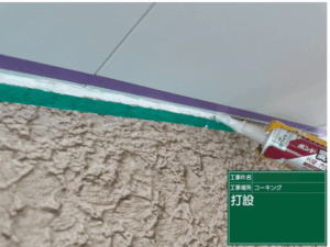 外壁とのつなぎ目にはコーキング材を充填させていただいています。