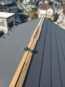 特に棟板金は風の影響を受けやすい箇所のため、ビスの打ち方や下地の選定が非常に重要になります。