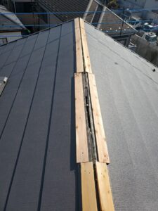春日部市にて屋根修理〈強風で棟板金が外れた棟板金を復旧〉